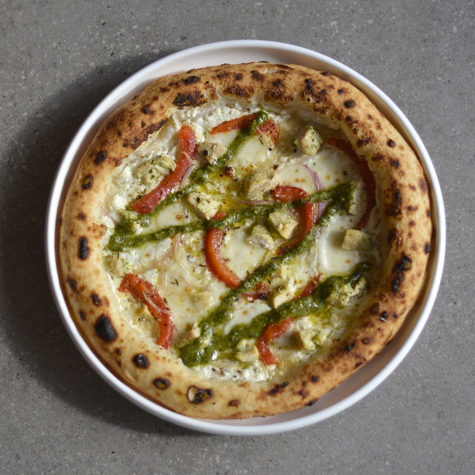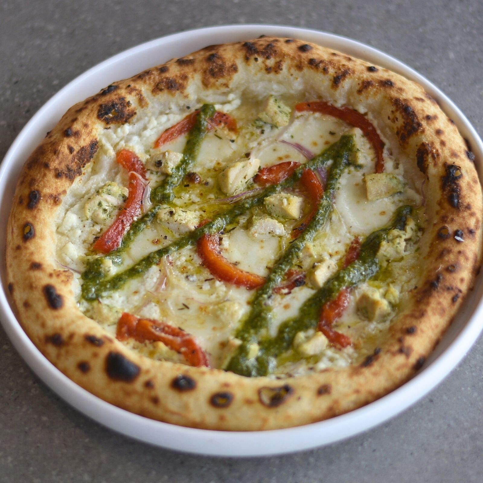 Ricotta, Gorgonzola, Pesto Chicken, Red Pepper, Pesto, Fior De latte